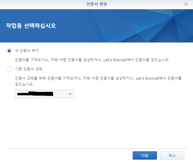 (2) 새 인증서 추가 체크 확인 후 다음 클릭